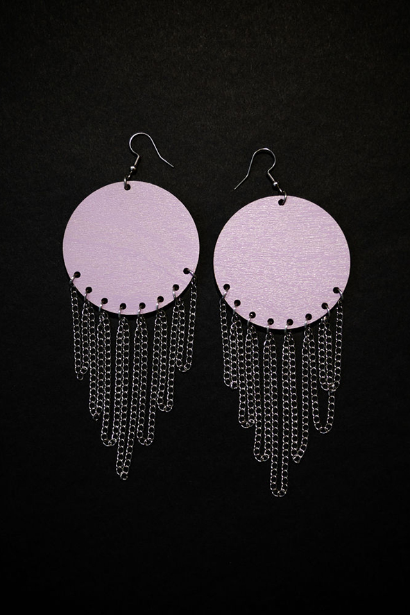 Malli on ensimmäinen korvismallini ikinä! Isoa kokoa, ketjua ja näyttävyyttä. Printtaus molemmilla puolilla korua!